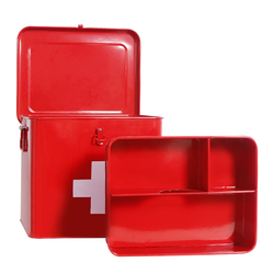 Erste-Hilfe-Set Erste-Hilfe-Medizin zubehör Bin 2-Tier Metall Medizin Aufbewahrung sdose Erste-Hilfe-Box mit abnehmbarem Tablett