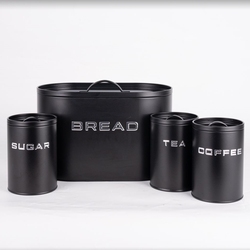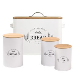 Brotbox für Küchen arbeits platte mit 3 Kaffee, Tee, Zucker kanistern Metall 4-teiliges Brotbox-Set mit Deckel