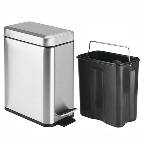 Cubo de basura de acero inoxidable rectangular Cubo de basura de 1,3 galones Cubo de basura de acero inoxidable 5L Cubo de basura de pedal pequeño y delgado