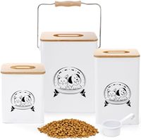 ชุดภาชนะเก็บอาหารสุนัข3ชิ้นชุดภาชนะบรรจุอาหารสัตว์เลี้ยงทำจากไม้ไผ่และที่ตักคุกกี้และแมวโถสำหรับสุนัข