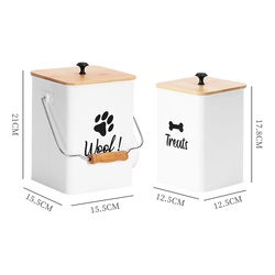 Metal Storage Cat Treat Canister Dog Treat Tins Tight Fitting Wood Lids Pet Food Treats Containers Set with Scoop